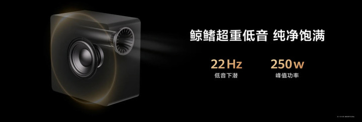 当然,如此沉浸的影音体验可少不了低音的加持,华为悦彰家庭影院“鲸鳍超重低音”的存在,使得低音部分变得浑厚有力、纯净饱满。它的重低音箱峰值功率达到了250W,低音下潜可至22Hz,内置209mm直径低频扬声器,最大冲程35mm。你想象一下,当电影中出现战斗机垂直爬升的画面,你将感受到引擎轰鸣声从脚底窜到头顶,完美还原了“音轨移动轨迹”。这款产品采用的仿生鲸鳍风管设计,能让气流释放更加平稳,噪音也会更少。在实际测试中,无论是动作片的爆炸场景,还是音乐会中的低音部分,用户都能感受到强劲而清晰的音质效果。