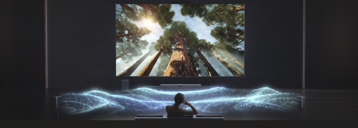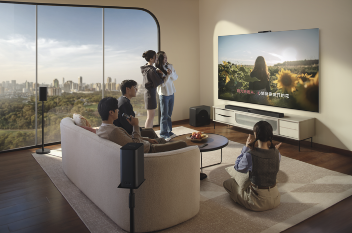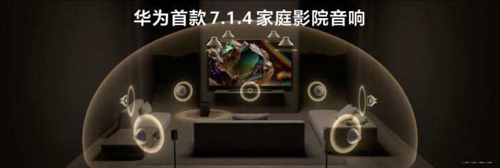 华为悦彰家庭影院的核心亮点之一是其7.1.4星穹声场。这一数字代表着:7个主音频声道、1个低音声道和4个天空音声道,这样的音箱系统结构,能够创造出立体的的声音效果,让声音不再局限于同一平面上,从而形成全方位的声场,而且不管坐在哪里,都能拥有“黄金观影位”这样的配置通常只在高端影院或专业级家庭影院中才能见到,华为将其带入消费级市场,确实令人惊喜。